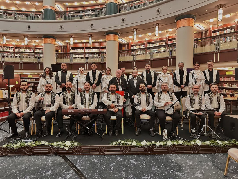 Papa 14. Leo’nun Türkiye ziyareti kapsamında düzenlenen programda, Cumhurbaşkanlığı Külliyesi’nde sahne alan müzisyenler Antakya Medeniyetler Korosu.